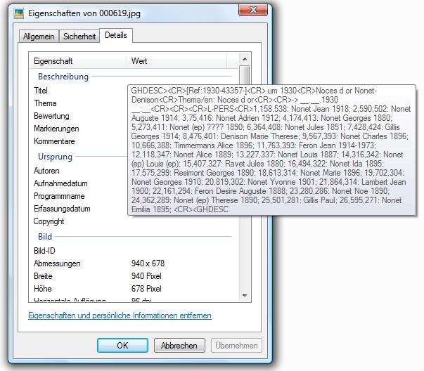 Eigenschaften des Bildes unter Windows Vista oder Seven