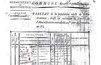 1798 - Census (an VI) Thèmes: Source: AAEB MT361 Christ Salgat émigrera en 1852 vers les Etats-UnisPierre Salgat restera à Movelier 01- Salgat Pierre ; 02- Salgat Anne-Marie ; 03- Salgat Christian ; 04- Salgat Pierre ; Contactez-nous à ce sujet
