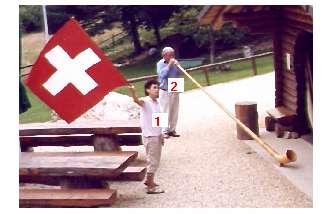 Ernest et Thérèse Leuenberger au cor et au drapeau